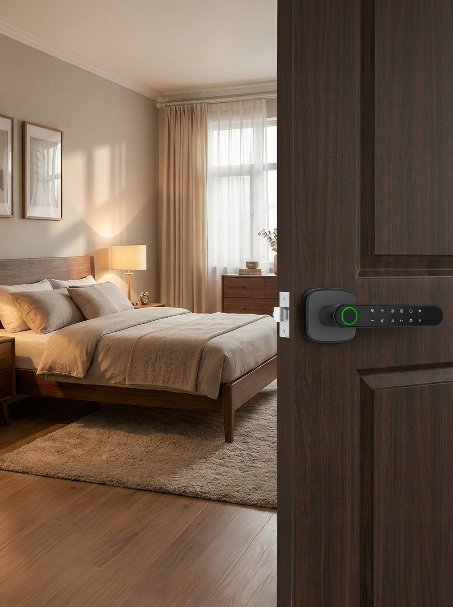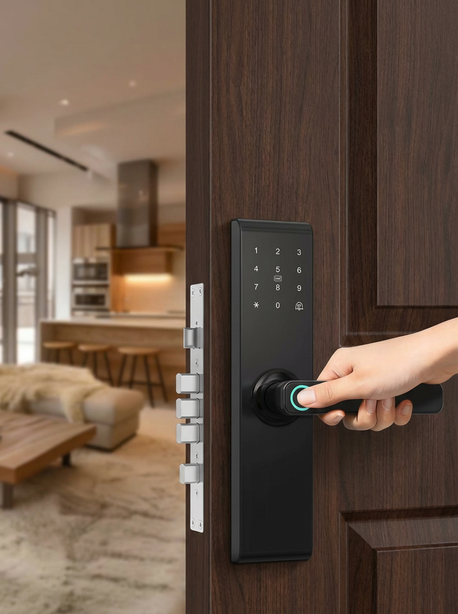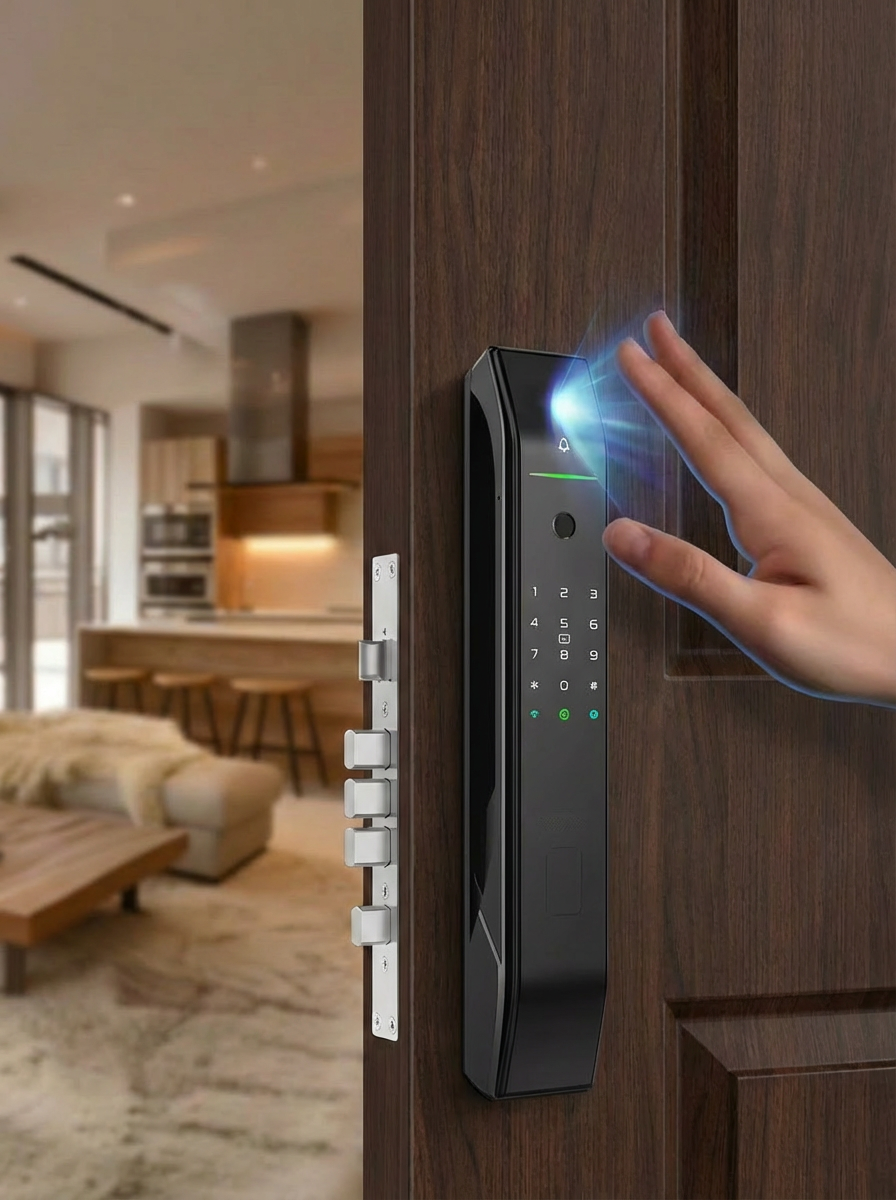 Premium smart doors and locks featuring Face ID, fingerprint recognition, and app control. Fireproof, soundproof, and designed for the modern home.