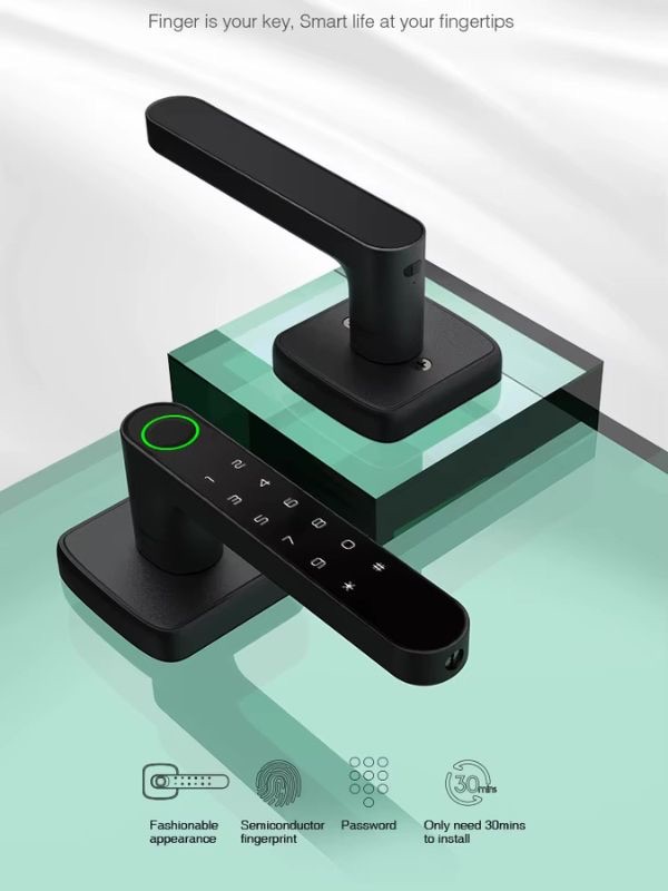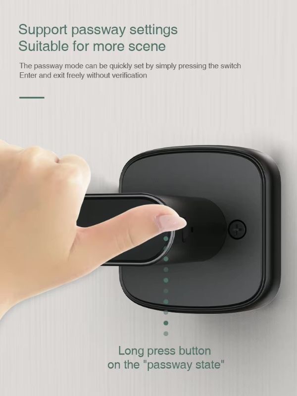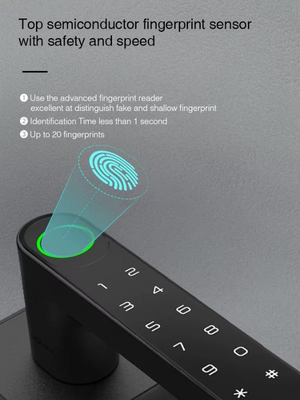 The HaloBar features an advanced semiconductor fingerprint reader with learning function that excellently distinguishes fake and shallow fingerprints. With its metal U-shaped handle for comfortable grip and wear resistance, plus Tuya Bluetooth app integration for remote access records, battery monitoring, and user management. Pathway mode allows free entry/exit without verification when needed.